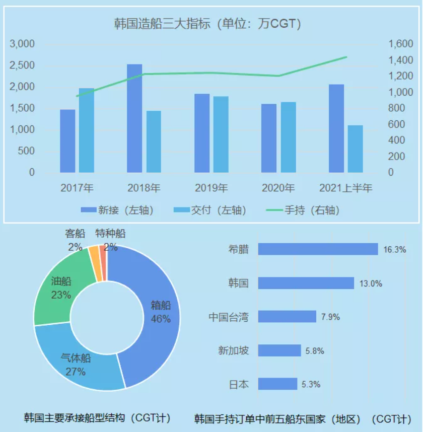 2021年上半年日韓造船數據簡析