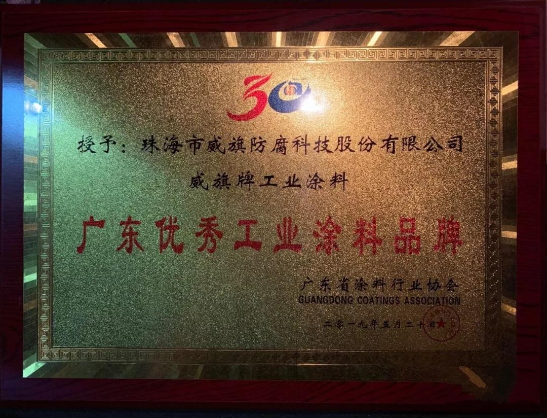 廣東省涂料行業協會在本月20日迎來三十周年生日,當天在慶典活動中,協會會長陳冰向威旗科技等多家知名企業頒發了“優秀工業涂料品牌”獎牌。
